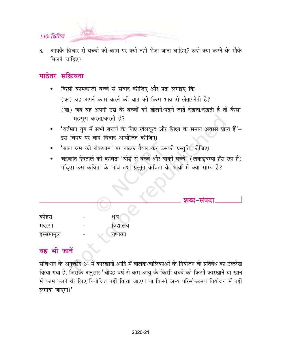 The time when students had limited options of choice for NCERT books wherein they need to go to the bookstore to buy the books but here at BeTrained.in, you can read the complete chapter-Bachche Kaam Par Ja Rahe Hain of NCERT books for class 9 Hindi Kshitij Part 1. If CBSE class 9 students are finding it hard to search for NCERT Hindi Kshitij Part 1 books online, then this is the right place as we have provided the textbooks of NCERT chapter wise. These books are available on our website for free along with NCERT Solutions and Exemplar solutions.
