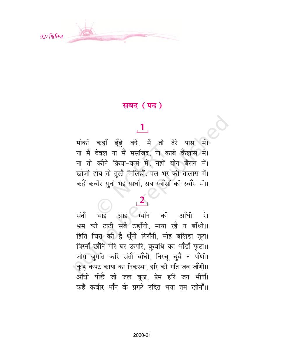 The time when students had limited options of choice for NCERT books wherein they need to go to the bookstore to buy the books but here at BeTrained.in, you can read the complete chapter-Sakhiyaan Evam Sabad of NCERT books for class 9 Hindi Kshitij Part 1. If CBSE class 9 students are finding it hard to search for NCERT Hindi Kshitij Part 1 books online, then this is the right place as we have provided the textbooks of NCERT chapter wise. These books are available on our website for free along with NCERT Solutions and Exemplar solutions.
