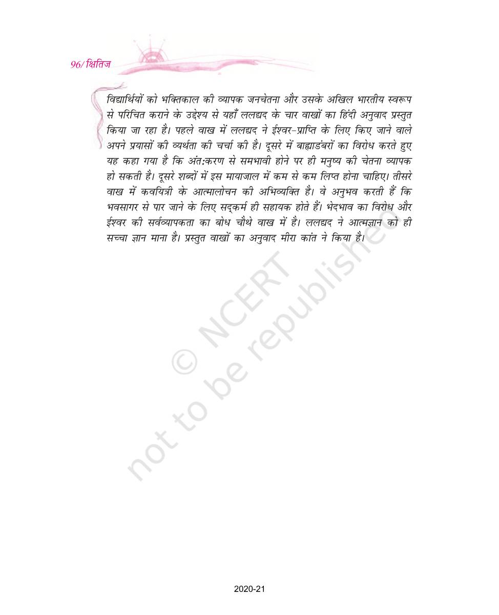 BeTrained.in has brought the NCERT books for class 9 Hindi Kshitij Part 1 where you can find every topic explained in a detailed way. These books are recommended by CBSE and some other state boards. Most of the teachers also use these books for teaching in schools. It is also used as a reference to prepare the questions for mid-term and final exams. The topics are explained in a very easy language along with examples and diagrams. Also, ideal for comprehensive and thorough learning to develop a clear concept. The chapters in the books have illustrative examples and practice problems for getting a hold of any kind of concept.