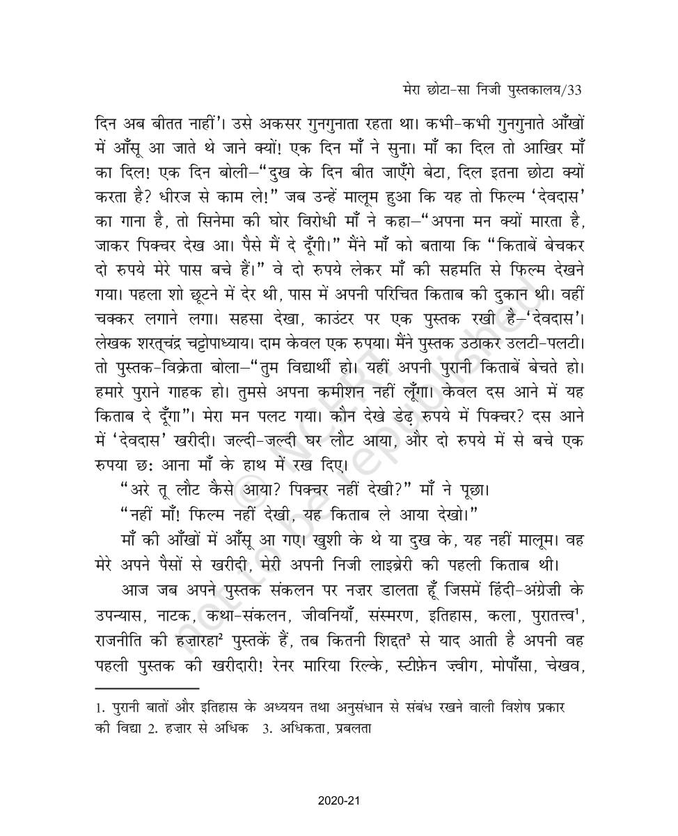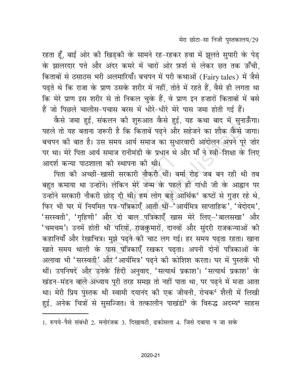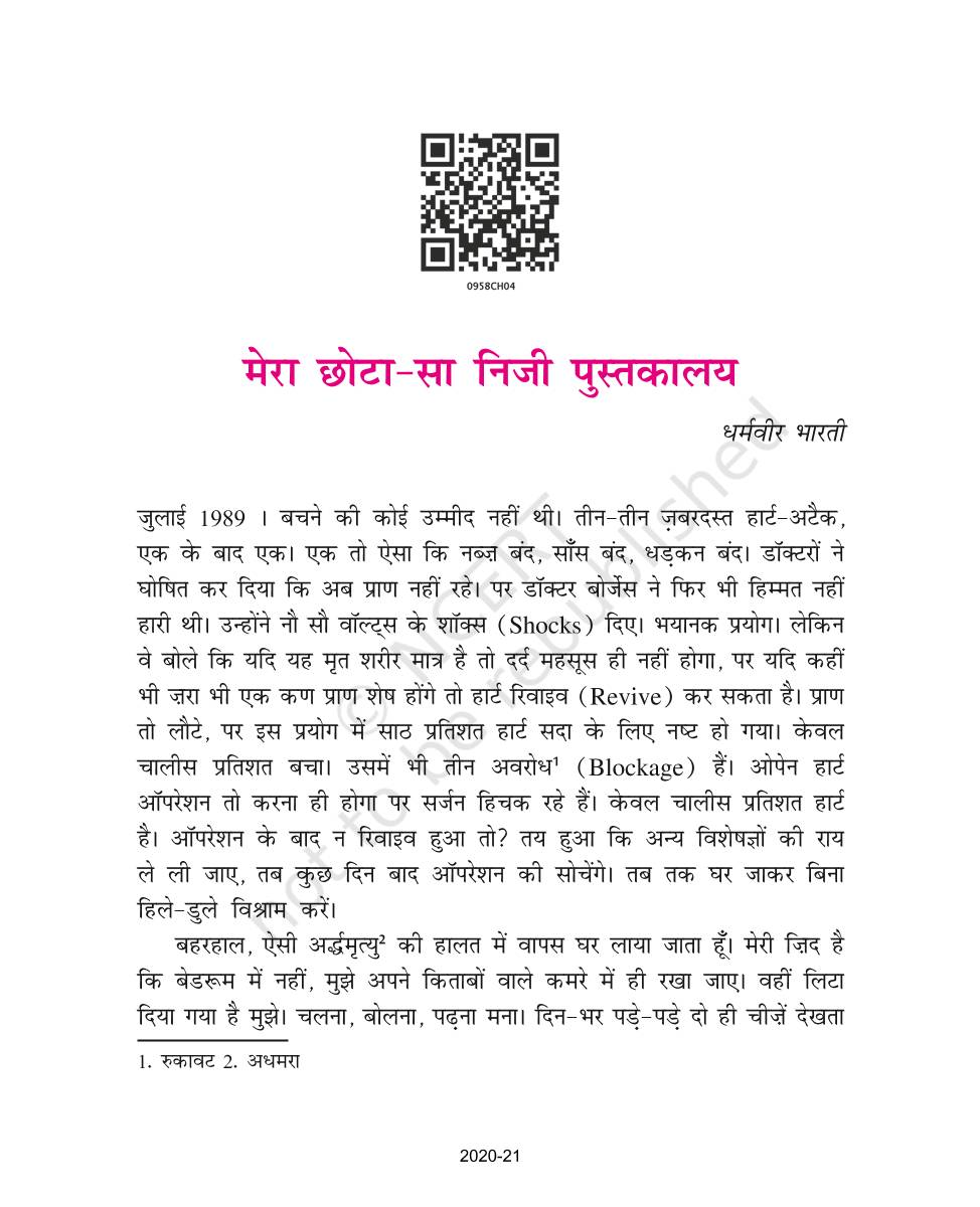 The time when students had limited options of choice for NCERT books wherein they need to go to the bookstore to buy the books but here at BeTrained.in, you can read the complete chapter-Mera Chhota Sa Nijee Pustkaalay of NCERT books for class 9 Hindi Sanchayan Part 1. If CBSE class 9 students are finding it hard to search for NCERT Hindi Sanchayan Part 1 books online, then this is the right place as we have provided the textbooks of NCERT chapter wise. These books are available on our website for free along with NCERT Solutions and Exemplar solutions.