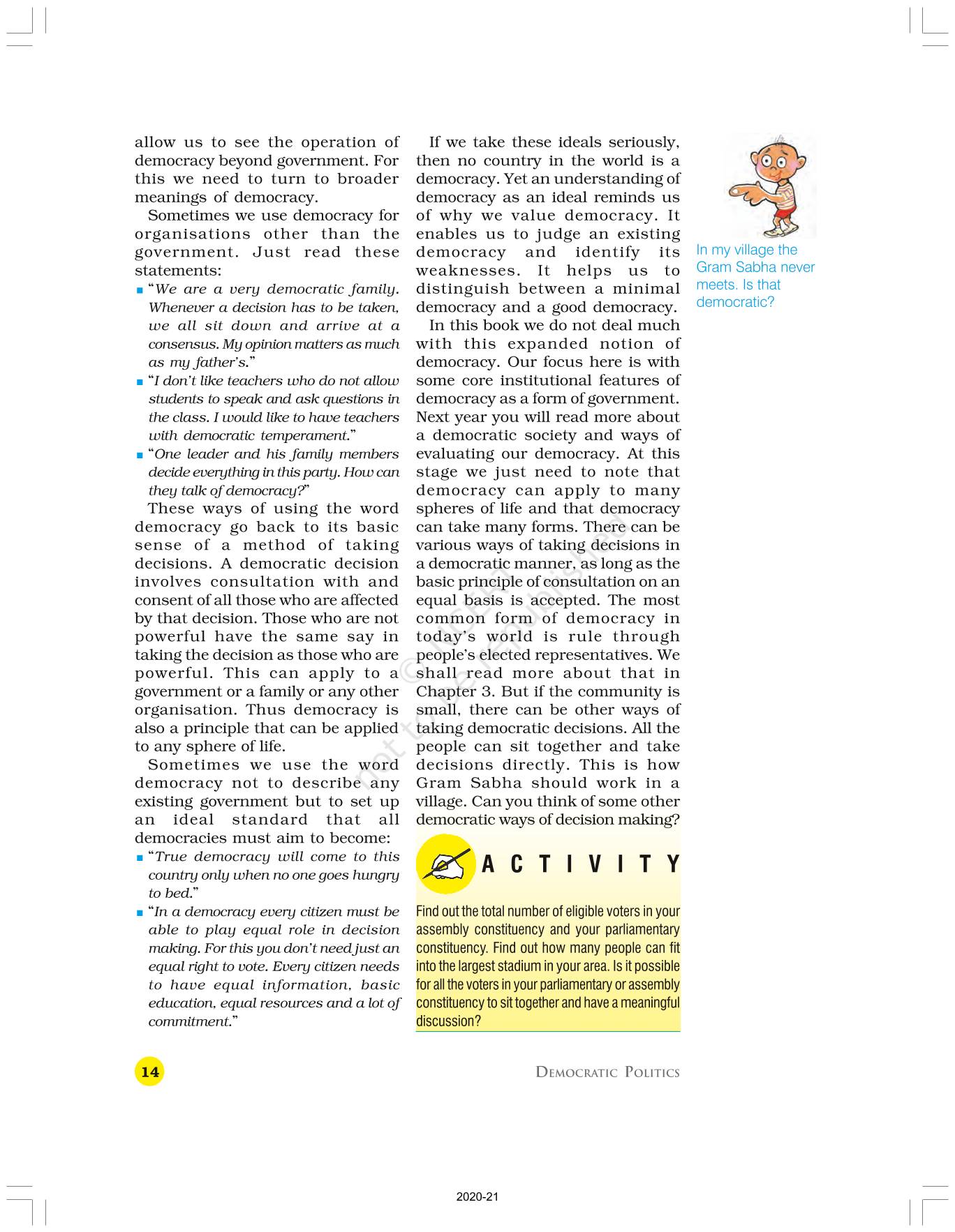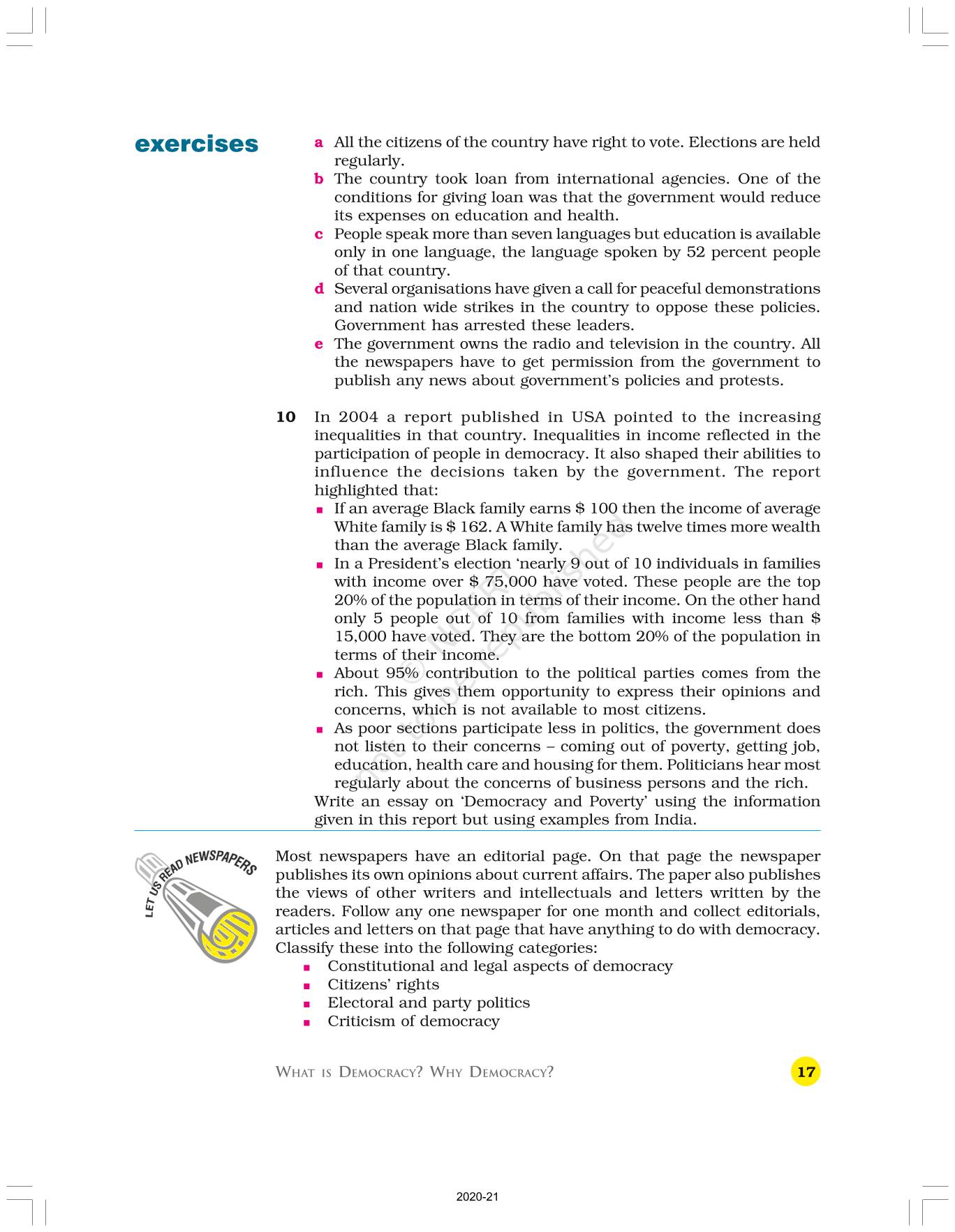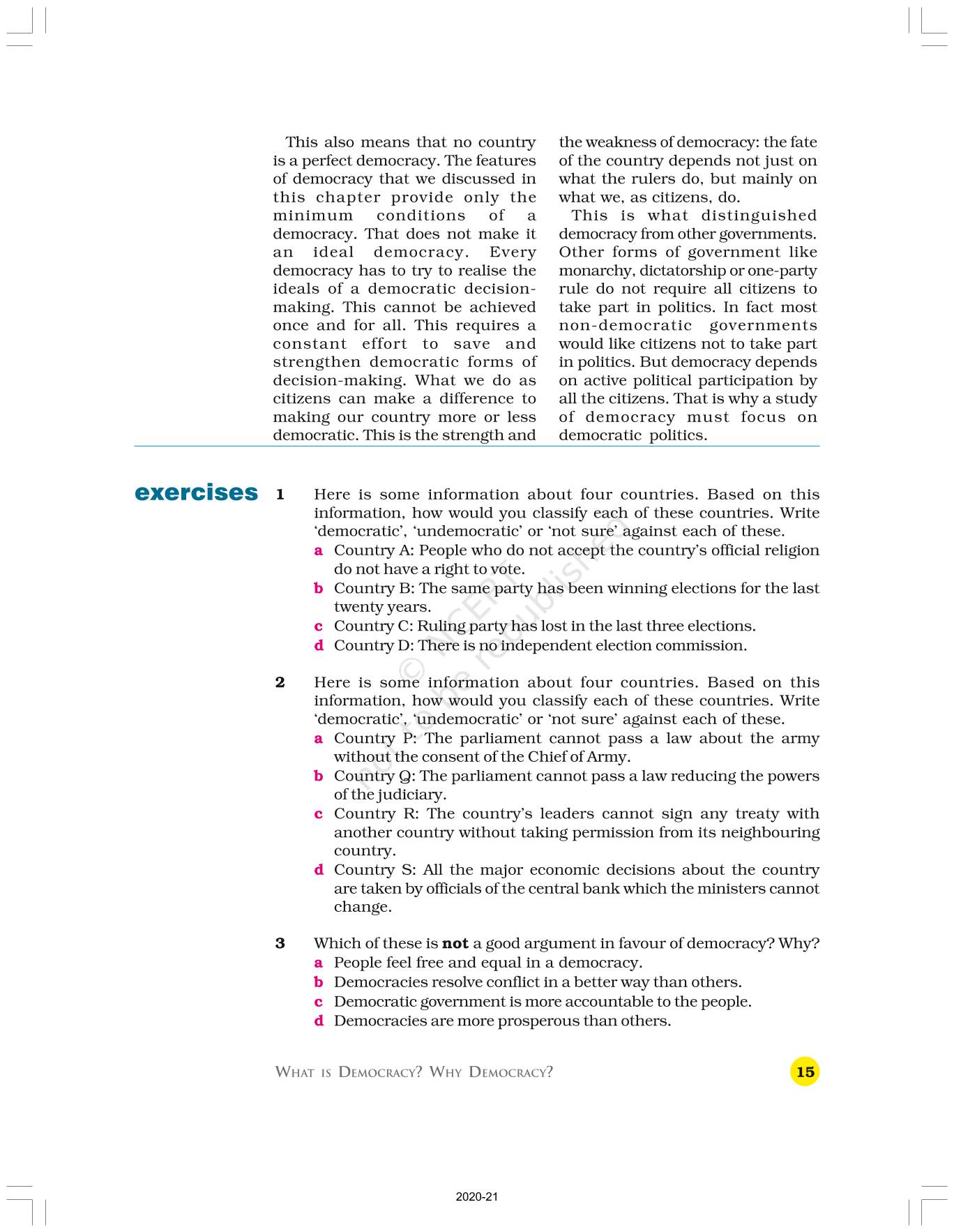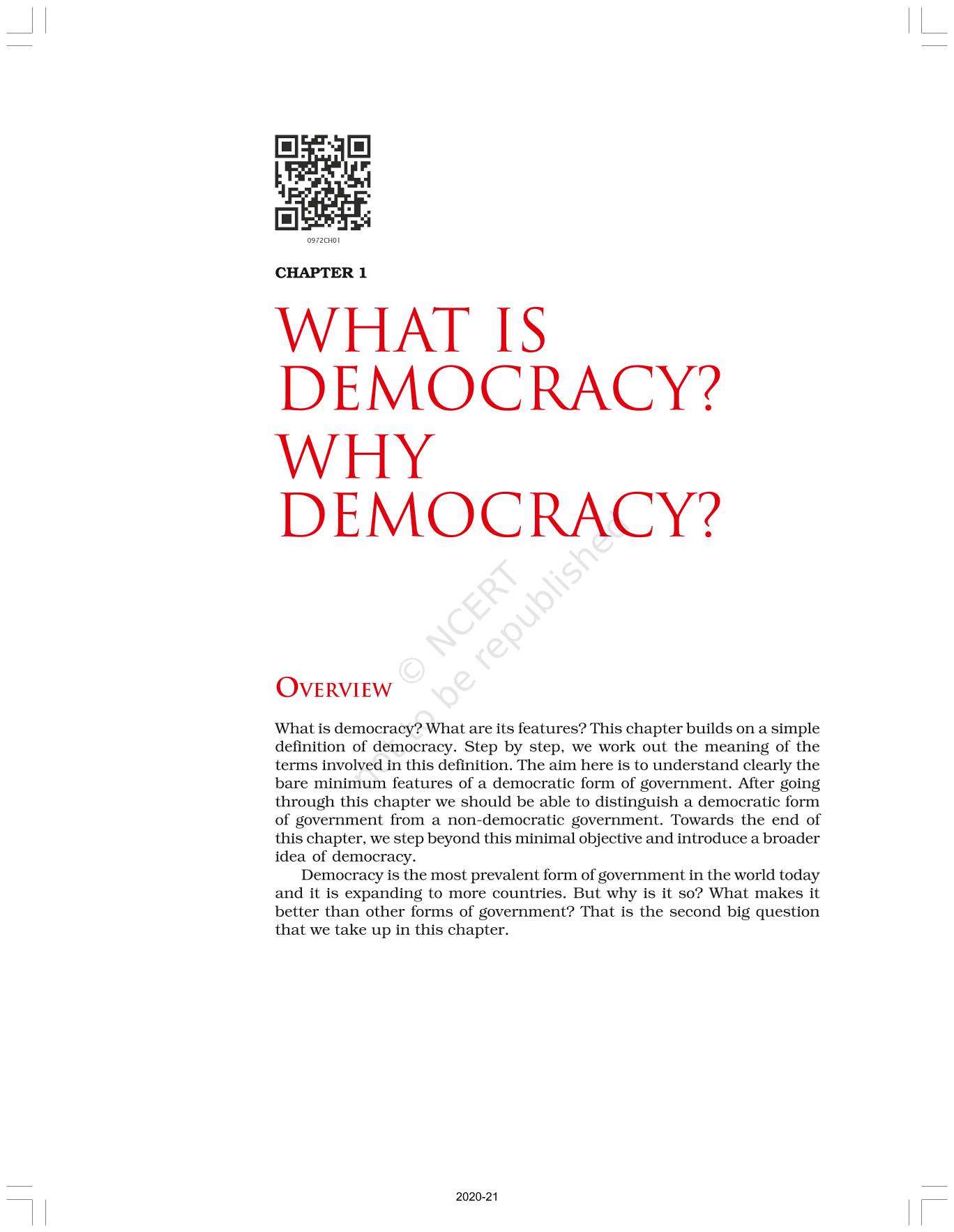 The time when students had limited options of choice for NCERT books wherein they need to go to the bookstore to buy the books but here at BeTrained.in, you can read the complete chapter-What Is Democracy Why Democracy of NCERT books for class 9 Political Science Democratic Politics I. If CBSE class 9 students are finding it hard to search for NCERT Political Science Democratic Politics I books online, then this is the right place as we have provided the textbooks of NCERT chapter wise. These books are available on our website for free along with NCERT Solutions and Exemplar solutions.