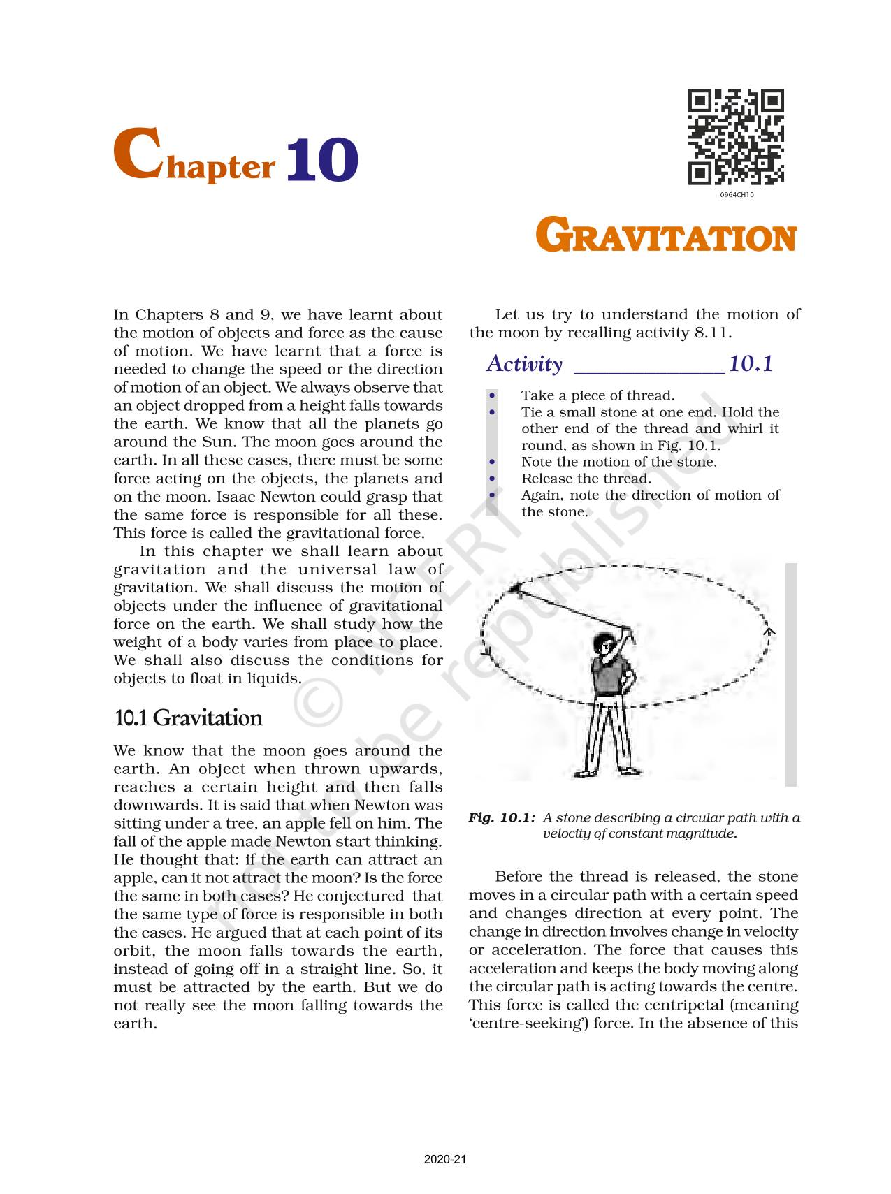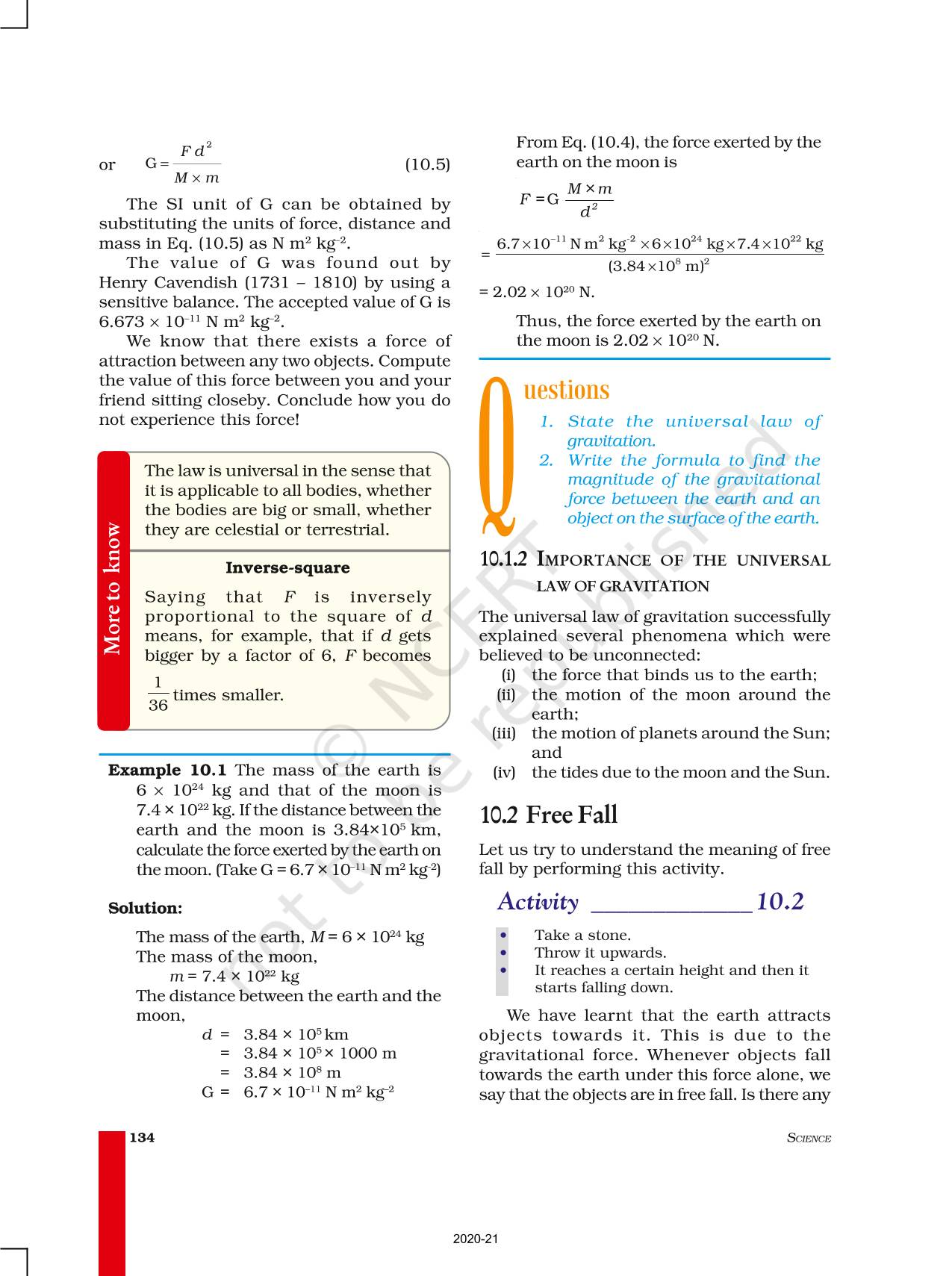 The law of gravitation states that the force of attraction between any two objects is proportional to the product of their masses and inversely proportional to the square of the distance between them. The law applies to objects anywhere in the universe. Such a law is said to be universal.