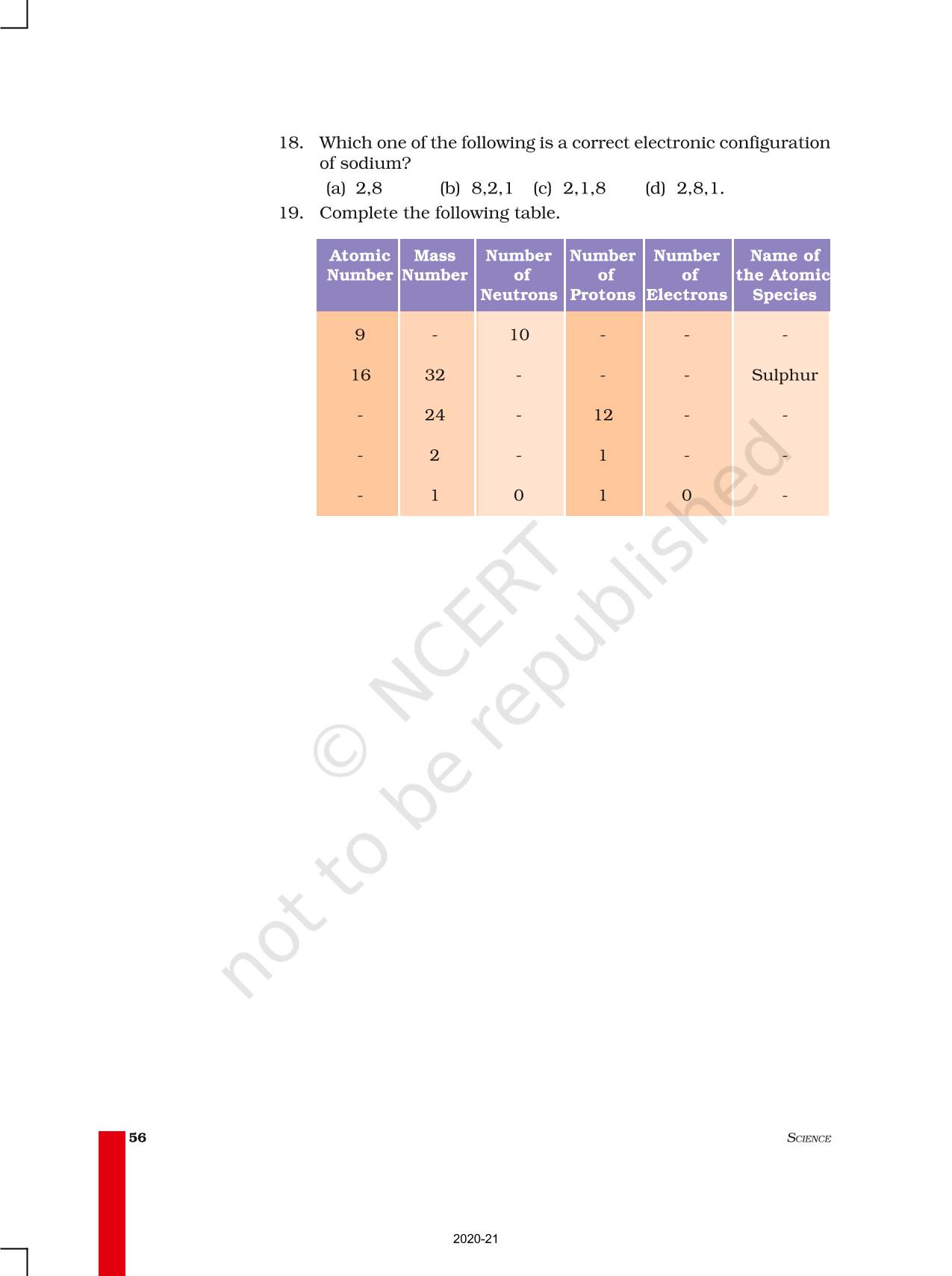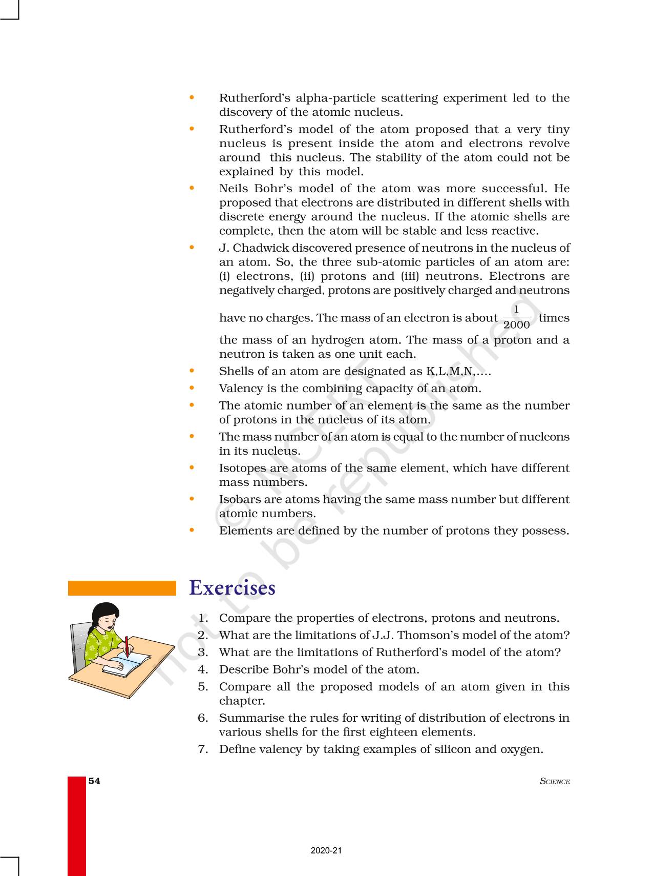 • J. Chadwick discovered presence of neutrons in the nucleus of an atom. So, the three sub-atomic particles of an atom are: (i) electrons, (ii) protons and (iii) neutrons. Electrons are negatively charged, protons are positively charged and neutrons have no charges. The mass of an electron is about 1/2000 times the mass of an hydrogen atom. The mass of a proton and a