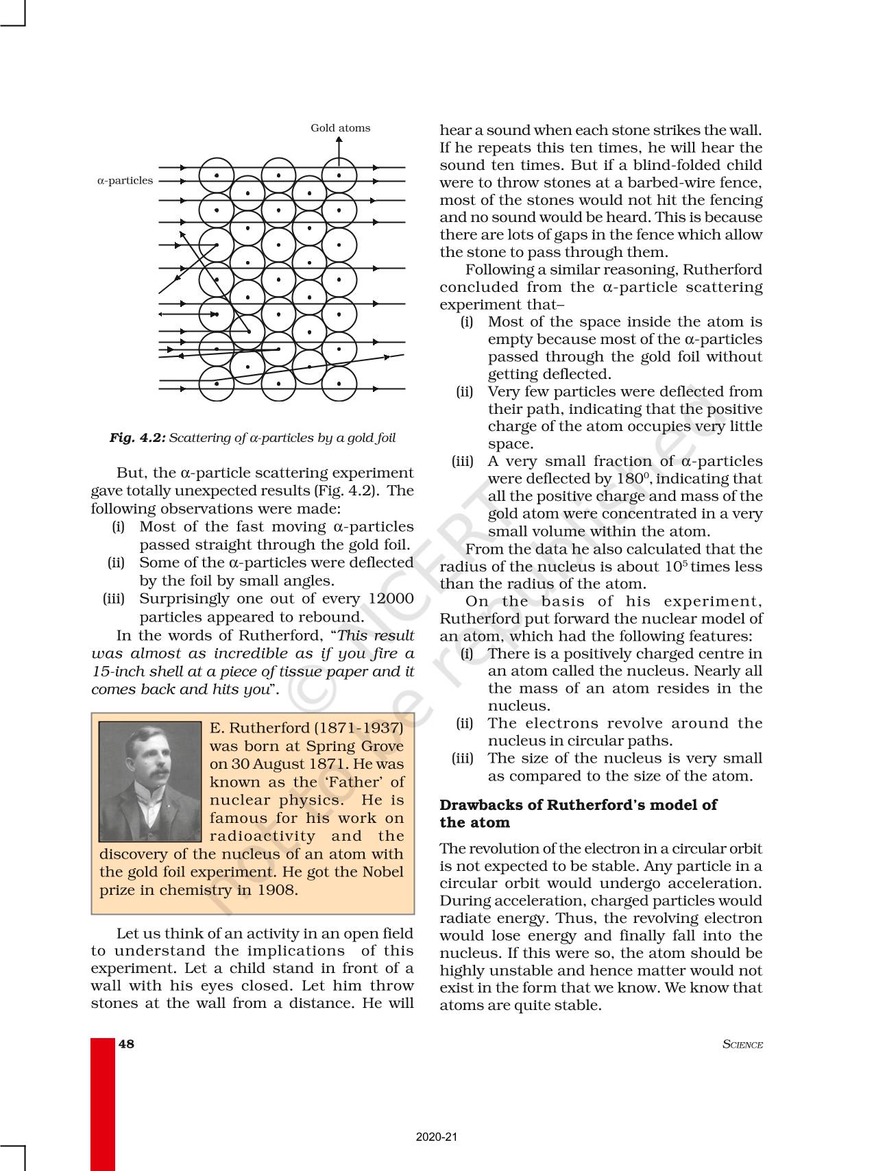 • Rutherford’s model of the atom proposed that a very tiny nucleus is present inside the atom and electrons revolve around this nucleus. The stability of the atom could not be explained by this model.