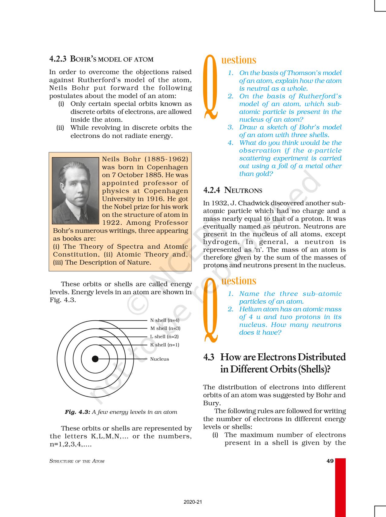 • Neils Bohr’s model of the atom was more successful. He proposed that electrons are distributed in different shells with discrete energy around the nucleus. If the atomic shells are