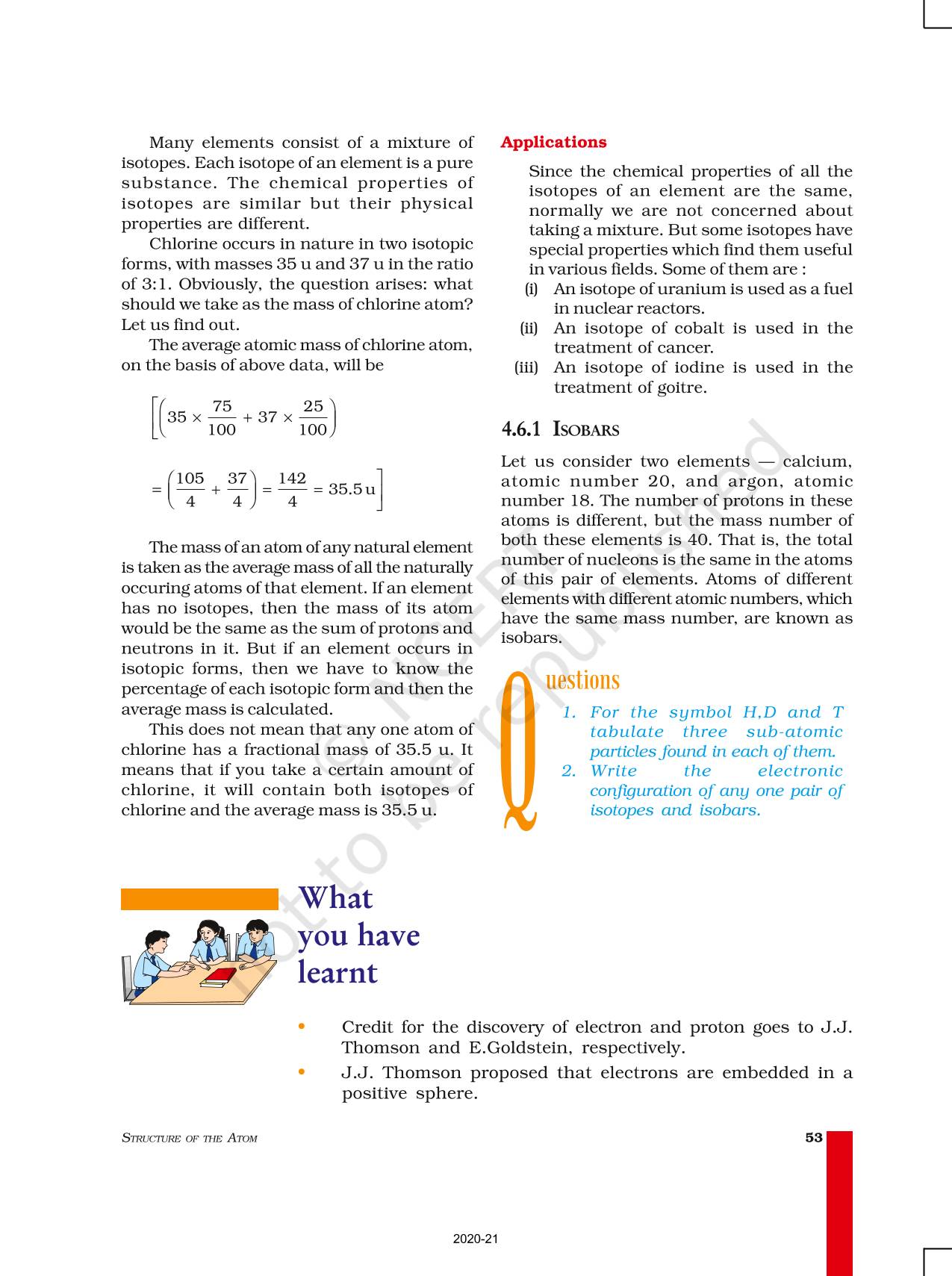 • Credit for the discovery of electron and proton goes to J.J.Thomson and E.Goldstein, respectively.